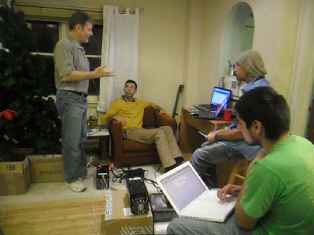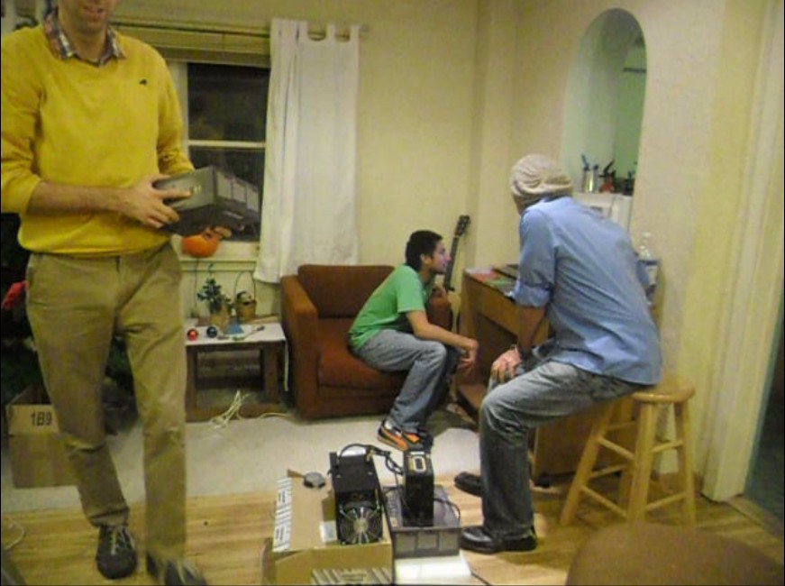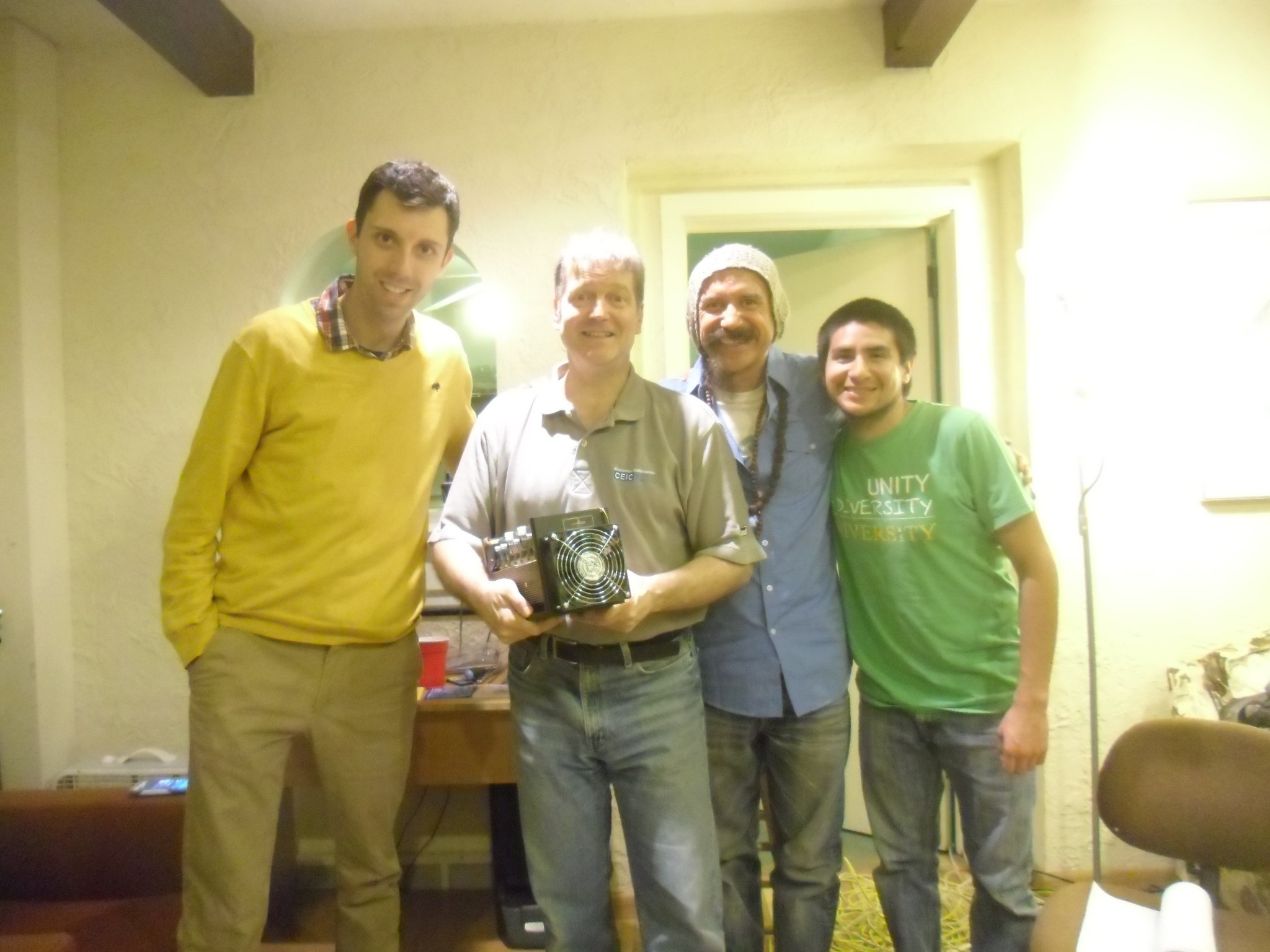 First Bitcoin business transaction in Fairfield, Iowa at the Friday Art Walk on October 3, 2014 for .01 BTC, $3.38 for a computer cable when Bitcoin was $338. Now .01 BTC is worth over $1000, up 300 times. Rick Shaddock of the Fairfield Iowa Digital Coin Association buys it from Veda Royale of theSomebody Cares eLectronic Store. | Y |